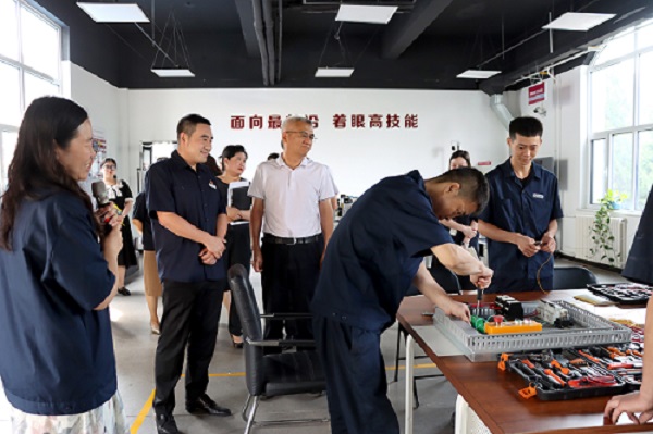 隨后,賈堤一行走進工業(yè)機器人實訓基地,深入了解了集團技能人才培養(yǎng)與焊材智能化生產(chǎn)線建設(shè)情況。賈堤指出,金橋集團要加大自主研發(fā)投入,夯實技術(shù)底蘊,提升品牌價值,拓寬人才引進渠道,進一步加大吸納人才的力度,促進高質(zhì)量充分就業(yè)。